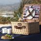 You'll feel as though you're vacationing in the English countryside with this English-style picnic basket that includes service for two. Enjoy your tea and scones with the ceramic plates and mugs that are secured perfectly into the woven willow basket. Made of willow with polyester lining.