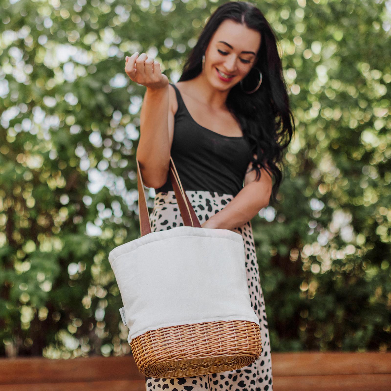 What happens when you take a stylish canvas beach bag and give it a sturdy wicker base and graceful leatherette handles? You’ve got a versatile tote that can take you from the wine and cheese picnic to your office lunch to the farmers market to a day out and about: the Pico Canvas and Willow Basket Tote. At 14.17 by 11.42 by 13.4 inches, this tote is the perfect size for a small picnic for two, a single lunch + an afternoon snack, or your beach essentials, while still being small enough to comfortably carry all day. And bonus: the Pico features a drawstring closure to make sure you never lose any items along the way.