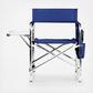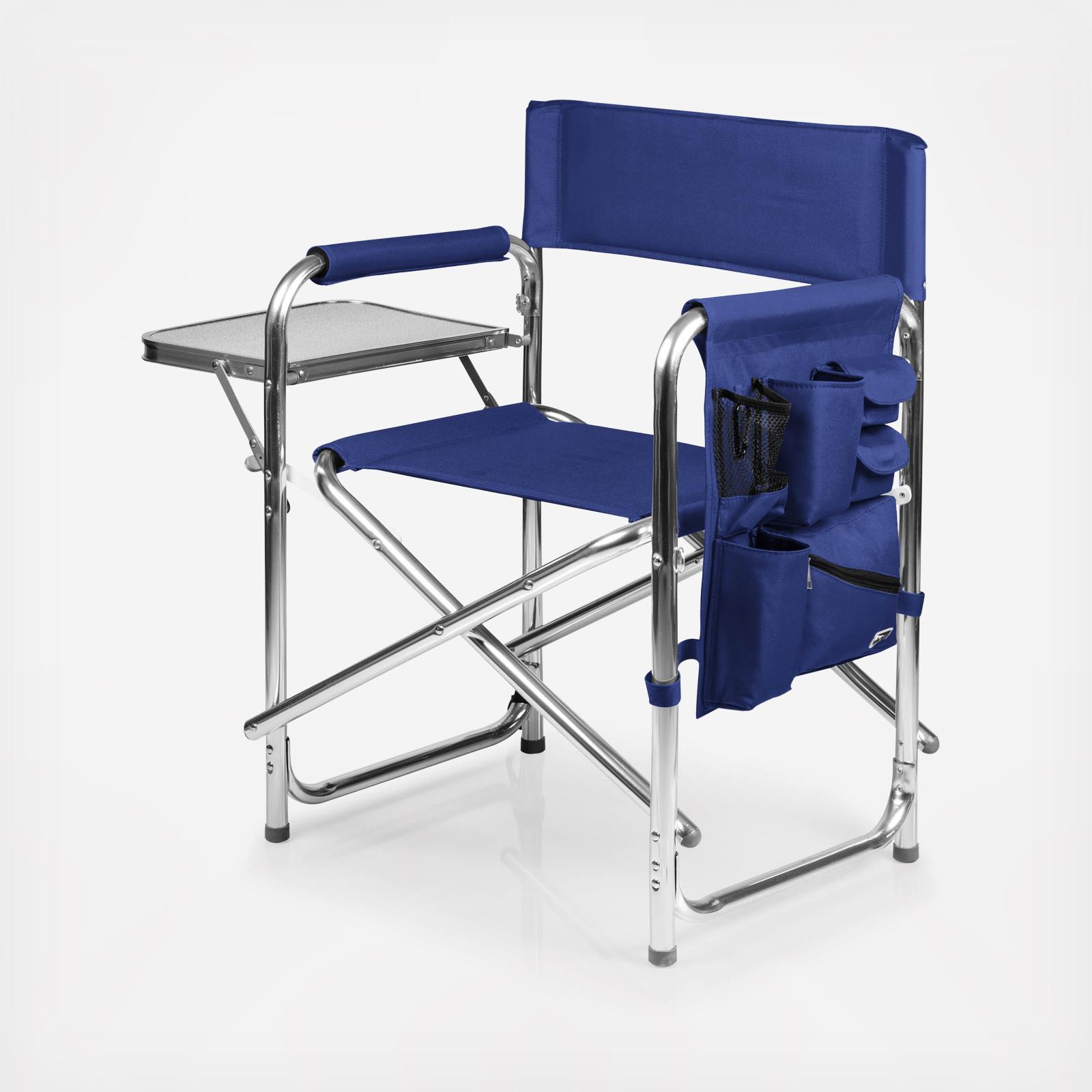 It's a beach chair for grownups and a camp chair for adults - the Sports Chair with Side Table is the last and greatest portable outdoor folding chair you’ll ever need. With classic lines and modern touches, this smart travel chair is made of durable polyester canvas on a foldable and lightweight aluminum frame. Features abound on this lawn and picnic-ready directors chair with padded seat and armrests, fold-out side table, hanging arm rest caddy for holding books & magazines, two insulated beverage pockets, and a variety of additional pockets for extras. Grab-and-go with the underseat carrying handles or use the adjustable, detachable shoulder strap for longer treks to the campsite, the beach, or across the stadium. This outdoor camping chair is ideal for camping, picnicking, concerts in the park, or watching your favorite sport comfortably from the sidelines.