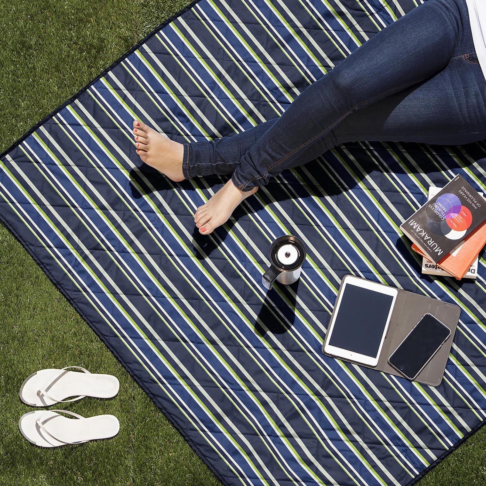 The Vista Blanket is an outdoor blanket that zips into a convenient carry tote. It has an adjustable carry strap and an extra-large pocket on the front of the tote. The exterior/underside of the tote/blanket is solid while the inside/topside has an attractive multi-colored design you haven't seen on an outdoor blanket. Add the fact that it's machine washable and dryable, and we're pretty sure you're going to love this blanket!