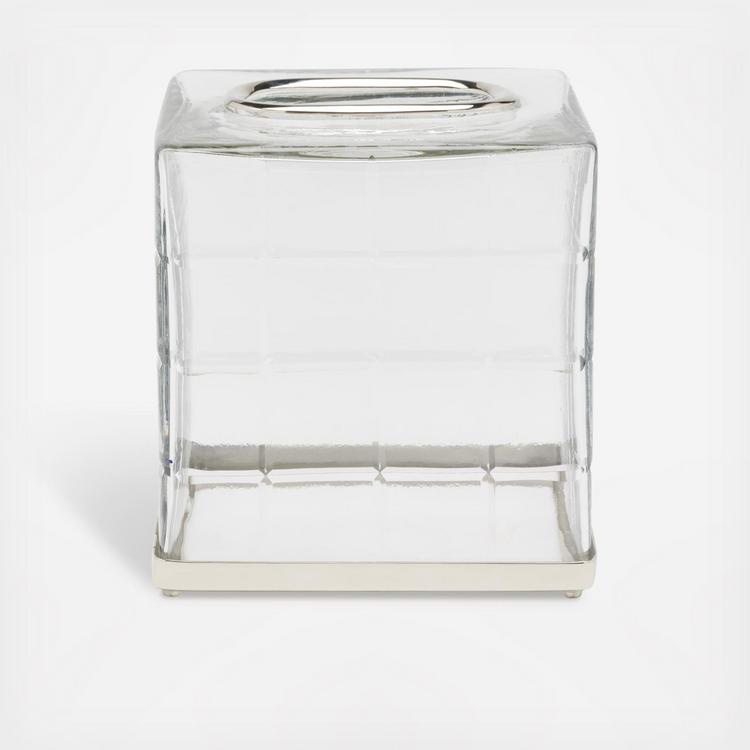 Transforms a basic tissue box into a tailored design detail. The Argos bath collection takes a modern turn with textured antique-inspired clear glass, accented in nickel trim. This item is handcrafted and may show slight variation from one piece to another.