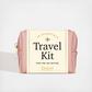 Bring your own business class with a 18-Piece Travel Kit. Designed for minimum space and maximum in-flight comfort, the vegan leather pouch contains 18 travel essentials. Bon voyage!