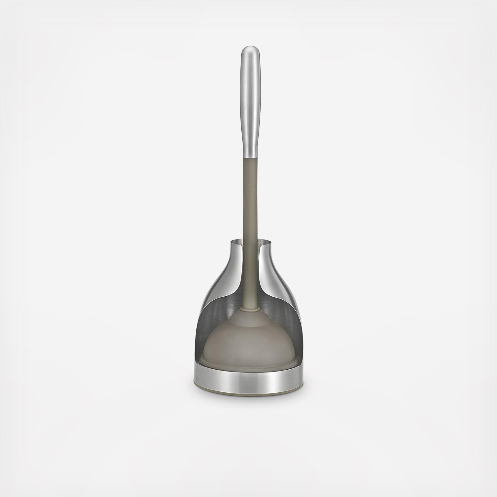 Decorate your bathroom with this stylish but functional Stainless Steel Toilet Plunger Caddy from Polder. This canister features sturdy brushed stainless steel and plastic construction. An open back allows for quick drying of excess water to reduce odors.