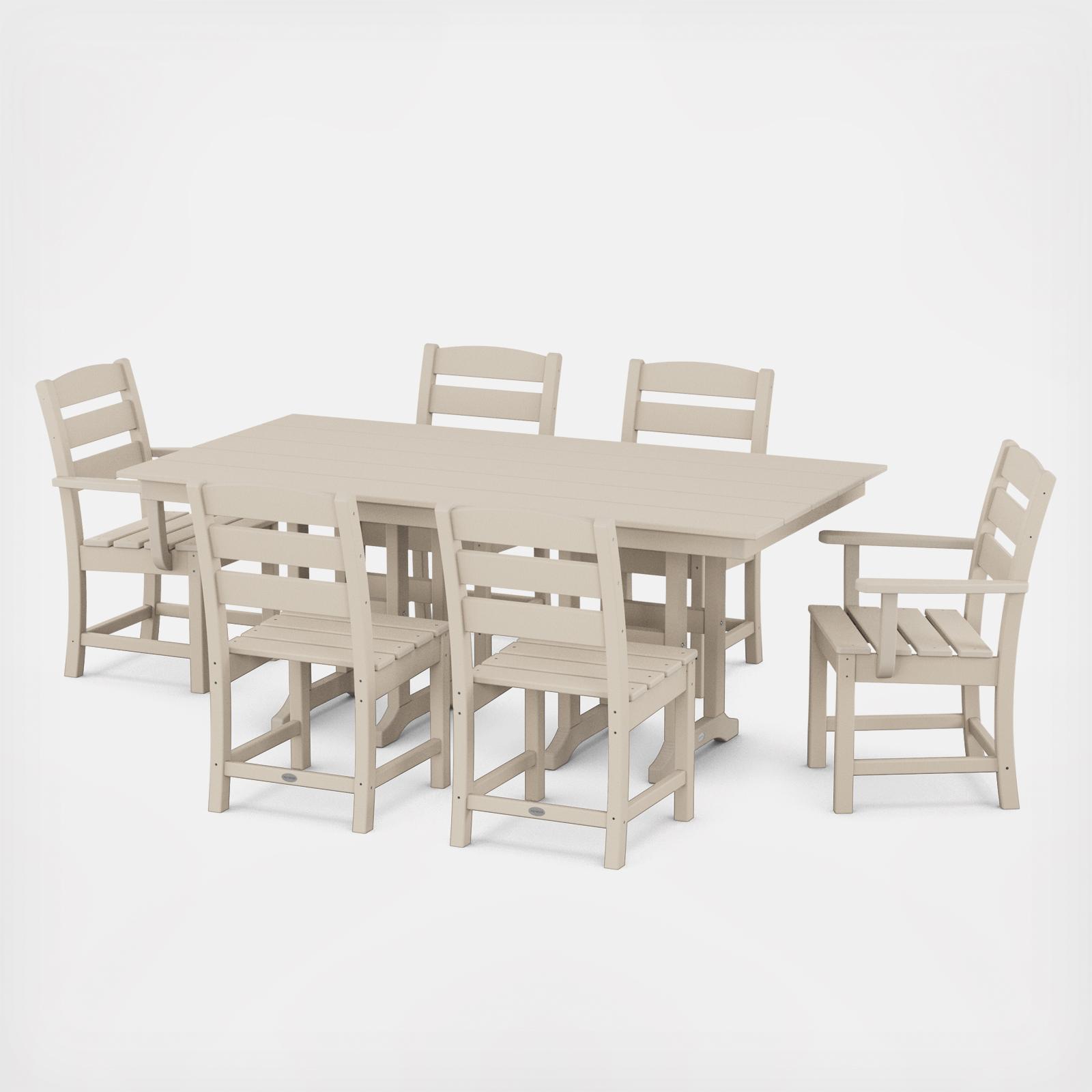 Gather family and friends around the table for a relaxing meal outdoors with the Lakeside 7-Piece Farmhouse Dining Set. This comfortable set seats up to six guests for a laid back dining experience on the back patio or deck. The Lakeside Dining Chairs feature relaxed, curved backs for comfort while the Lakeside 37" x 72" Farmhouse Dining Table provides a spacious tabletop ready for dinner, games, and more!