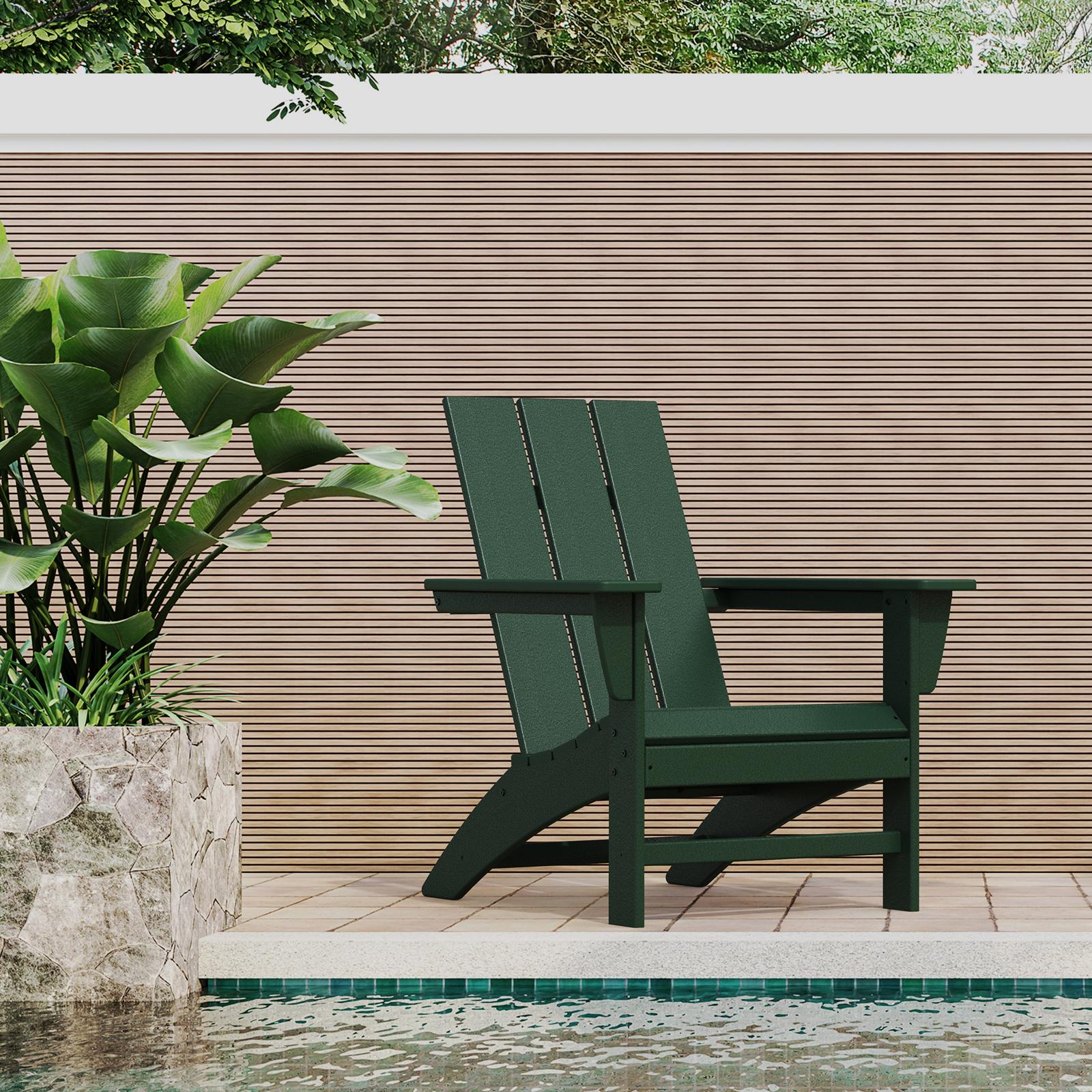 Laze the day away in the Modern Adirondack Chair, complete with a comfortably contoured seat and waterfall front. With a modern back style and sleek leg profile, this contemporary Adirondack is the perfect blend of style and comfort that will complement any outdoor space. Shipping times range from 5 to 15 business days depending on the item and color.