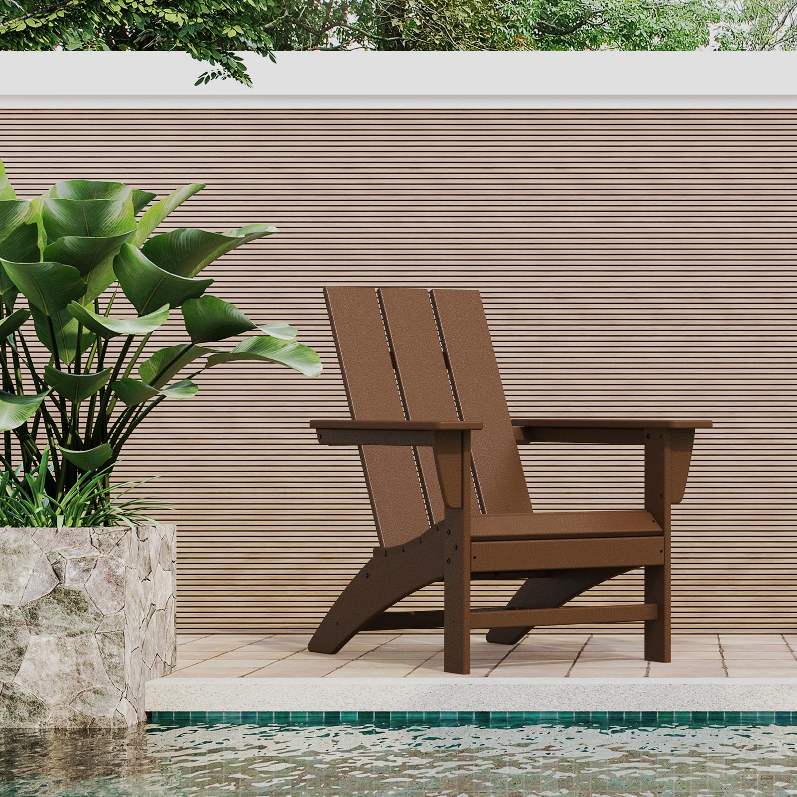 Laze the day away in the Modern Adirondack Chair, complete with a comfortably contoured seat and waterfall front. With a modern back style and sleek leg profile, this contemporary Adirondack is the perfect blend of style and comfort that will complement any outdoor space. Shipping times range from 5 to 15 business days depending on the item and color.