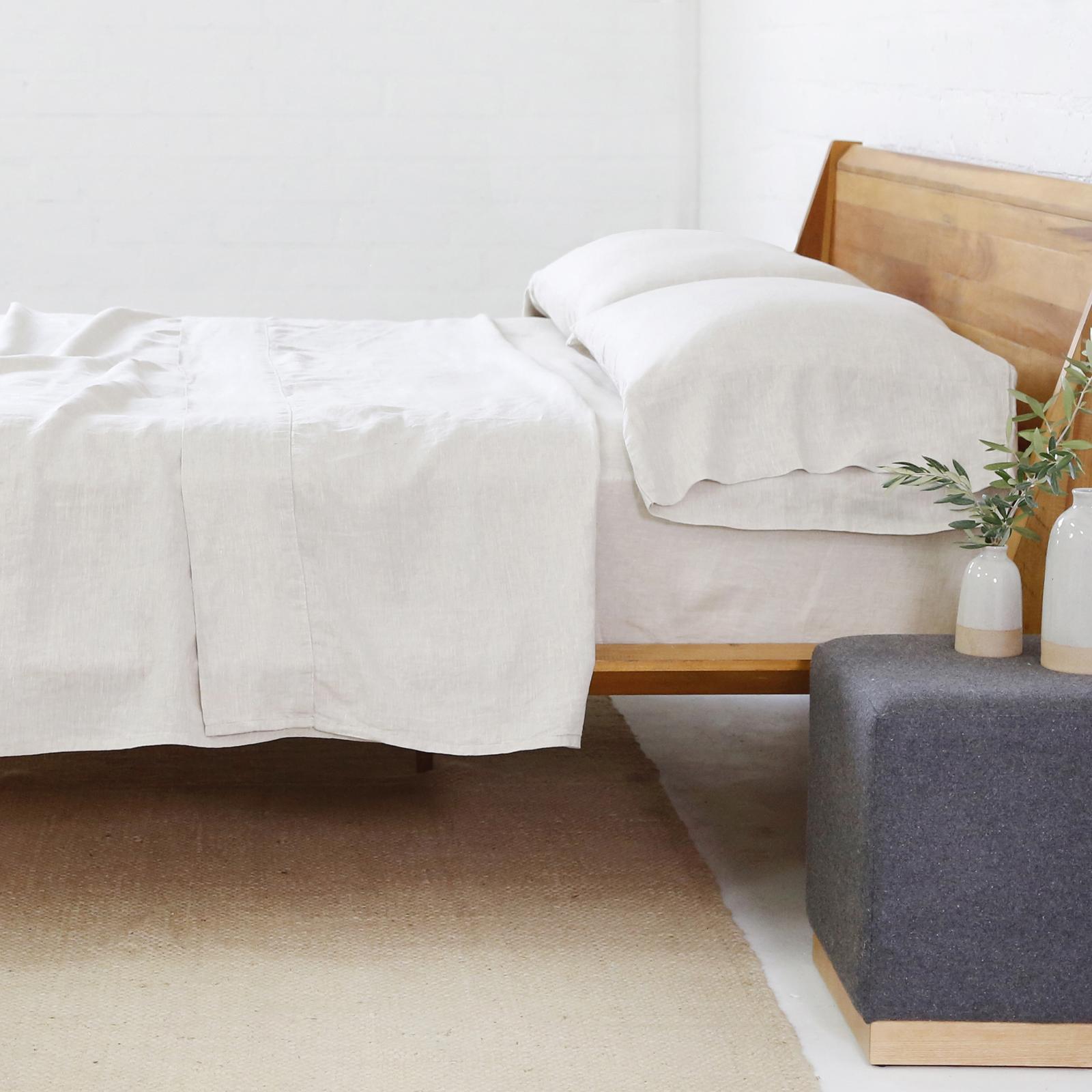 The Linen Sheet Set is made from Belgian Flax Linen. Linen has increased moisture-reducing properties and added breathability. Images by Pom Pom at Home.