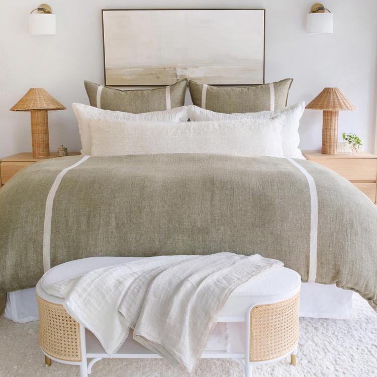 Warm and relaxed, the Rory Duvet Cover is woven from linen in a subtle herringbone pattern that adds texture and depth. The palette blends sun-washed terracotta with natural flax, accented by a soft cream stripe for just the right touch of detail. Designed for effortless layering, it offers a laid-back yet polished aesthetic that suits a wide range of interiors. Shell button closures and inner corner ties keep your insert securely in place, while the breathable linen softens beautifully over time. Pair with other pieces in the Rory collection to create a bed that feels both thoughtfully styled and comfortably lived-in. Coordinating big pillows and shams available.
