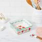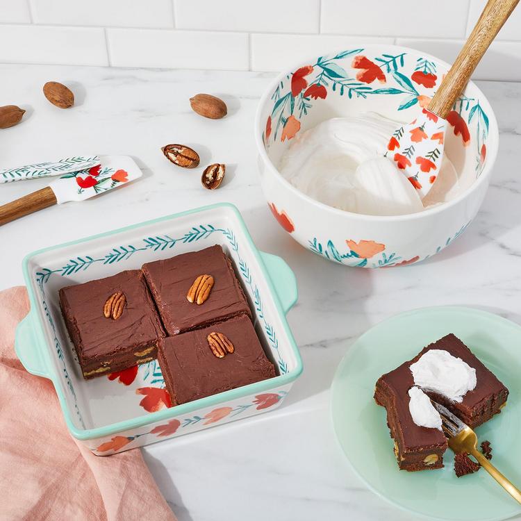 Brownies, Brussels sprouts, or baked beans – this delightful ceramic square baking dish accommodates them all with ease. Dual handles ensure easy carrying from kitchen to table, and the delightful floral design lends a festive note to any table. Plus, since it’s oven, dishwasher, and microwave safe, you can prepare, bake, and serve from the same pan – what could be easier?