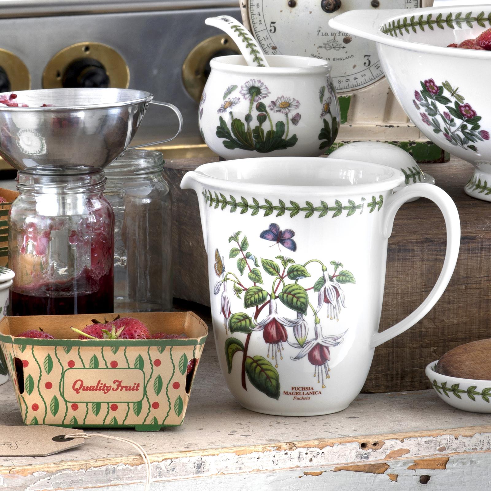 An essential tool for your home baking, the Portmeirion Botanic Garden measuring jug includes ml/L and fl oz/pint measurements on the inside of the jug and a beautiful fuchsia motif on the outside.