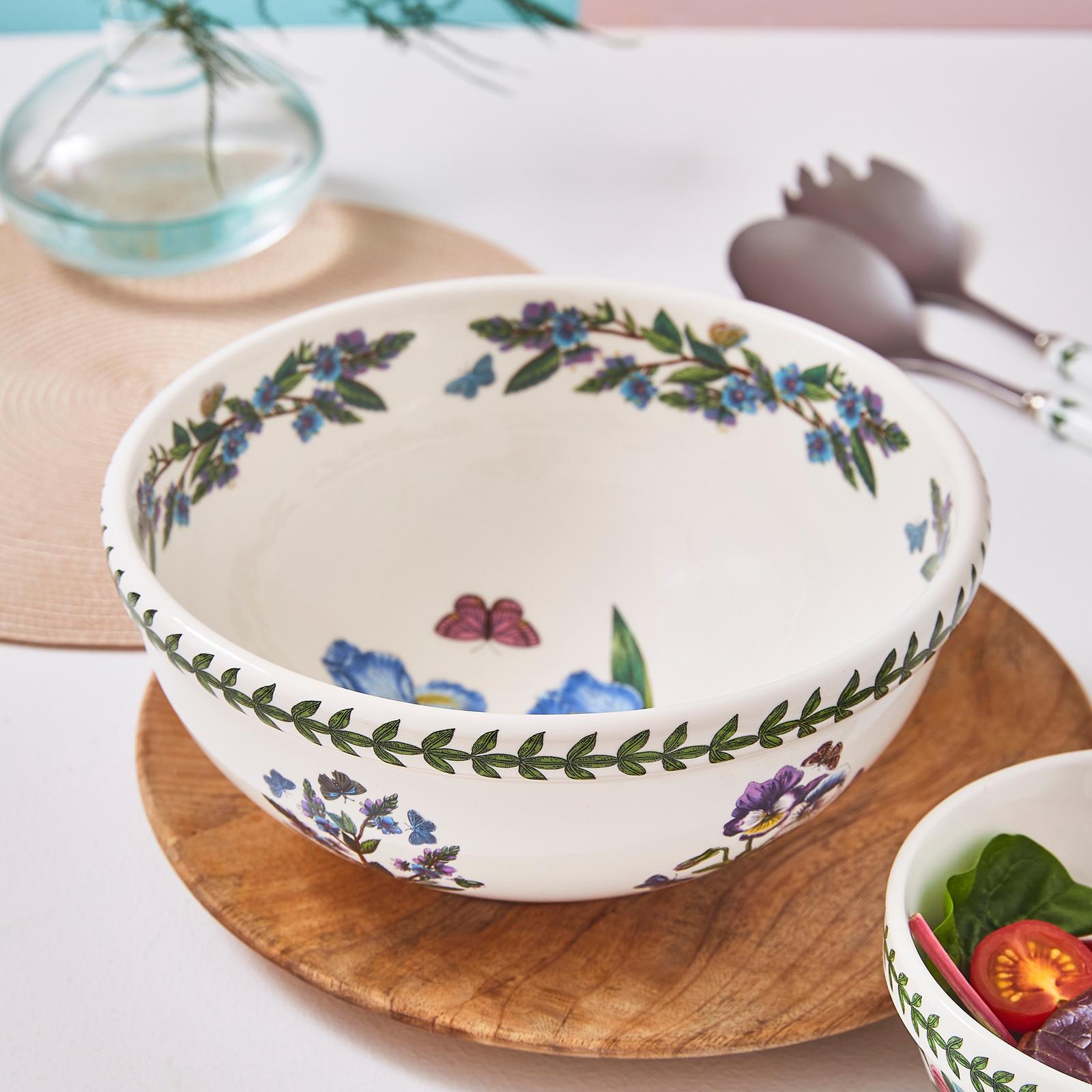 This Botanic Garden 9 inch salad bowl from Portmeirion features a choice of motifs alongside a floral border and leaf design. This salad bowl can be used for a variety of uses from mixing cake mixtures to displaying fruit and is dishwasher, microwave, freezer and oven safe making it perfect for the modern home.