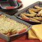 Take the guesswork out of assembling an essential bakeware collection with the versatile Rachael Ray Yum-o! Nonstick 5-Piece Oven Lovin’ Bakeware Set. This practical set can handle cakes, lasagna, meatloaf, roasted potatoes, brownies and more. Made from heavy gauge steel, the pans resist warping and feature long-lasting nonstick that provides excellent food and baked good release with easy cleanup. The pans' bold-colored, extra-wide grippy handles offer a confident grasp when pulling items from the oven, and they are oven safe to 500°F.