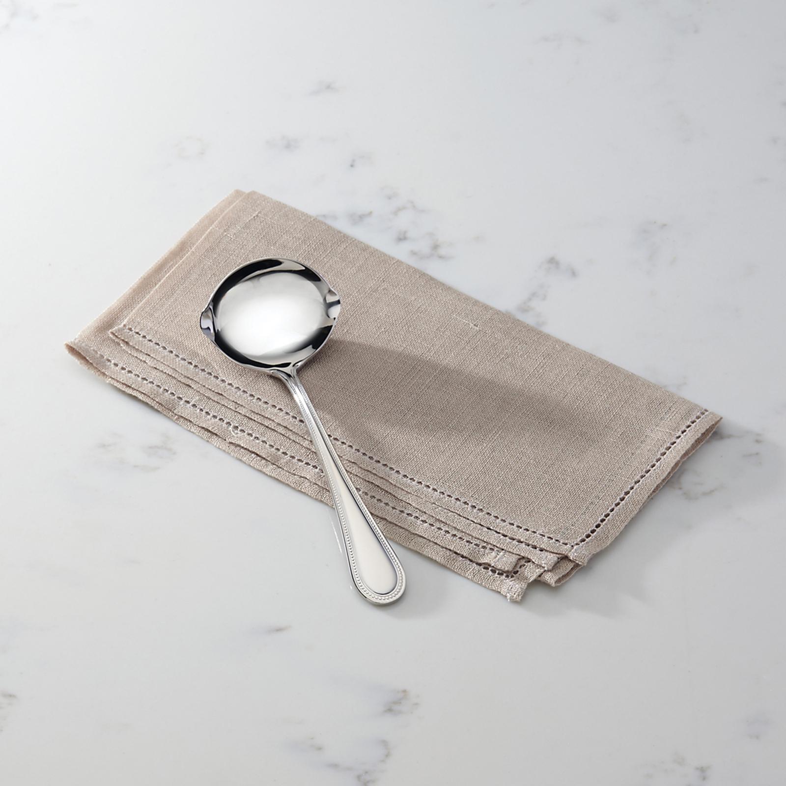 Featuring a classic beaded design on the handle, the Lyndon All-Purpose Ladle from Reed & Barton offers style and grace to any setting. Made of durable 18/10 stainless steel, this ladle provides functional, easy care essentials for both casual and formal entertaining. The All-Purpose Ladle allows you to serve gravy, dressings & sauces in style. Measures 7 1/4" inches in length. Elegantly boxed for gift giving.