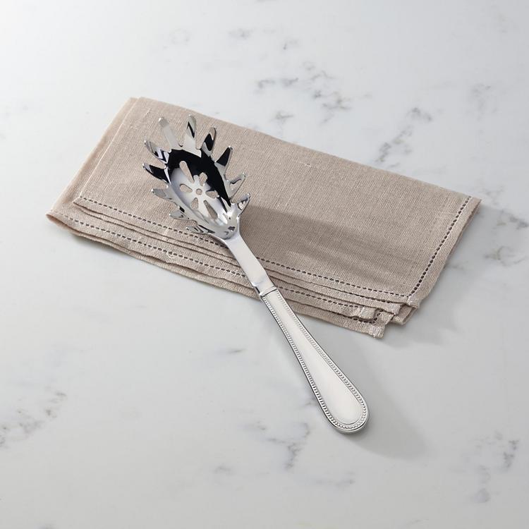 Featuring a classic beaded design on the handle, the Lyndon Pasta Scoop from Reed & Barton offers style and grace to any setting. Made of durable 18/10 stainless steel, this serving set provides functional, easy care essentials for both casual and formal entertaining. The Pasta Scoop is a wonderful way to serve pasta or any dish. Measures 12 inches in length. Elegantly boxed for gift giving.