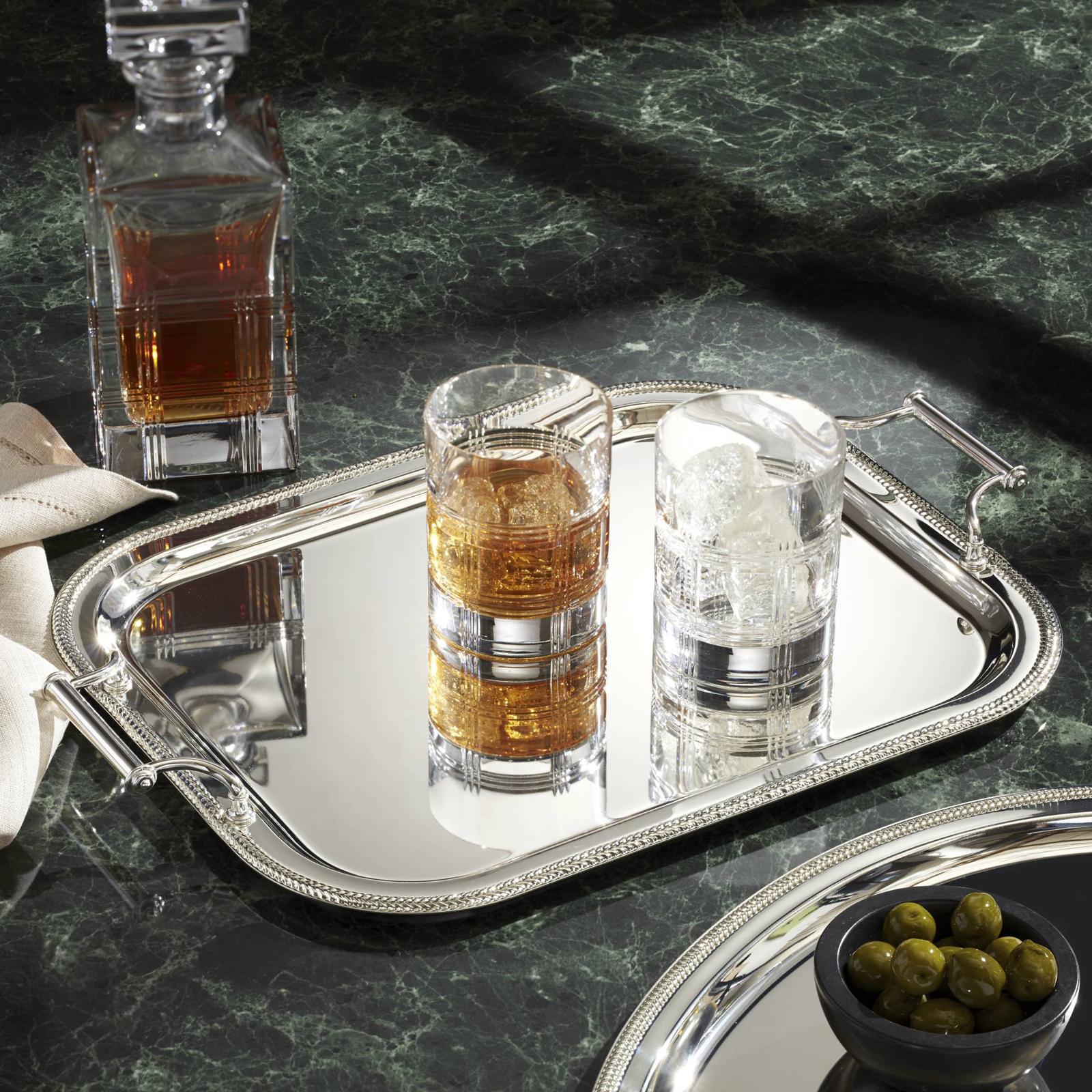 This stunning serving tray features an elegantly braided border for perfect presentation and baroque handles for an elevated experience. It makes a brilliant centerpiece or display for everything from a fresh, inviting fruits to a bouquet of flowers.