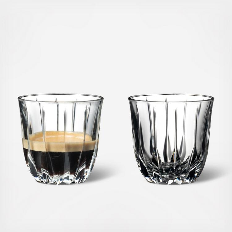 The slim, subtly flared lines of the Coffee Glass allow the aroma of all black coffee types to unfold fully.The slight inward curve makes pouring easy and boosts the development of a perfect crema. The volume is large enough for a double shot. The functional design of this product is complemented by the RIEDEL Drink Specific Glassware cut-crystal design.Presenting the RIEDEL Bar Drink Specific Glassware collection, an innovative series in collaboration with spirits specialist Zane Harris. This collection answers the need for cocktail-specific glassware with glasses like Neat, Rocks, Double Rocks, Fizz, Highball, Nick & Nora, Sour and Coffee, all perfected to cater to thousands of cocktails. This product is machine-made.
