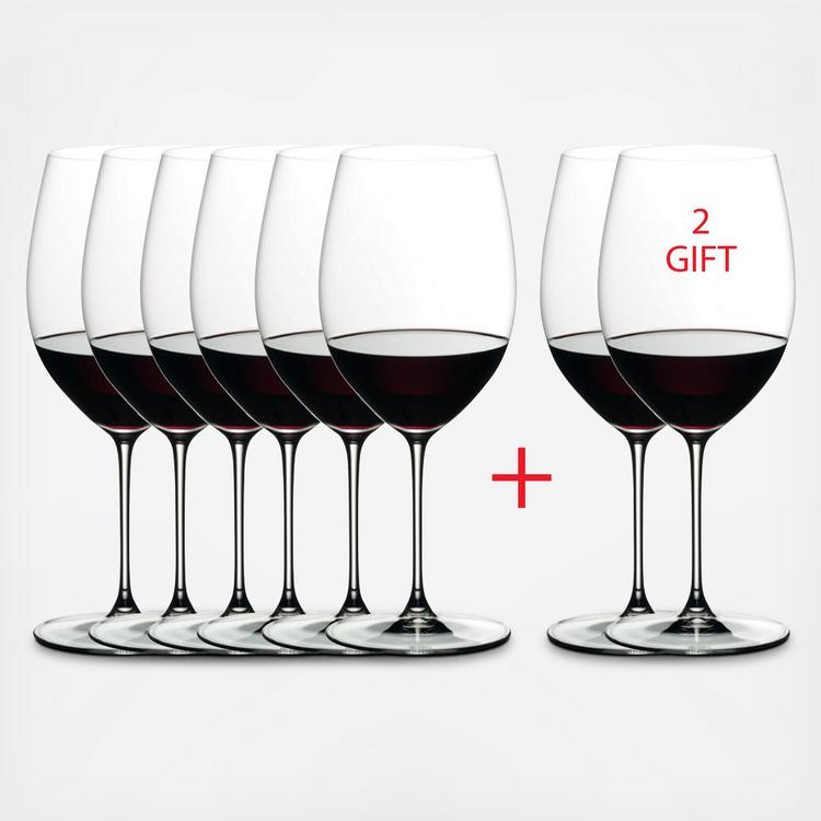 The Cabernet glass is perfect for full-bodied, complex red wines that are high in tannin. The generous size of this glass allows the bouquet to develop fully, and smooths out the rough edges. It emphasizes the fruit, playing down the bitter qualities of the tannin, and allows wines to achieve balance. Pay 6 Get 8- Value 25%