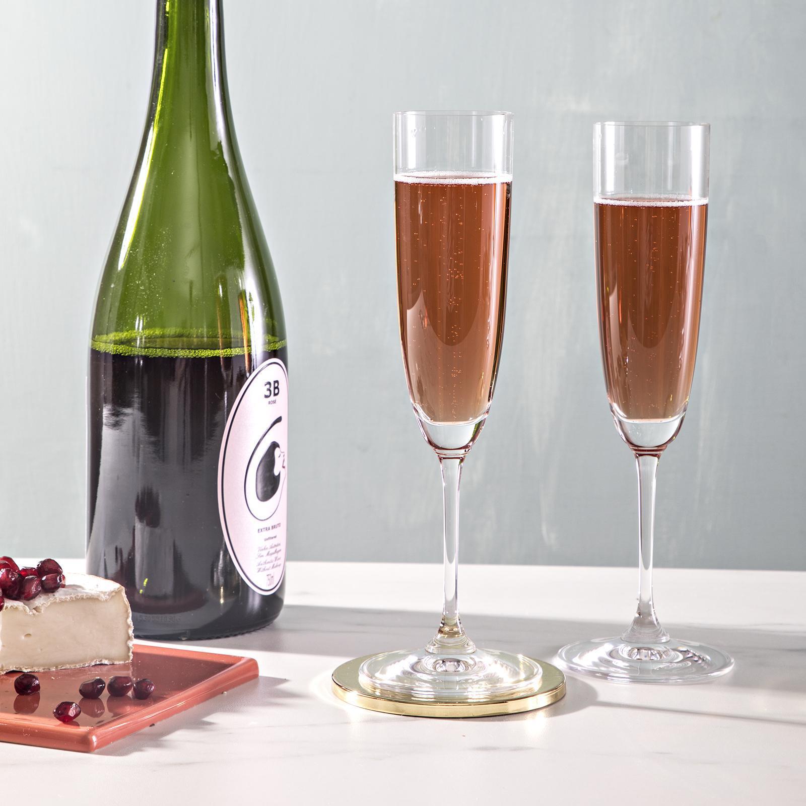 The Vinum line exudes functionality and elegance with classic styling and glass that accentuates the flavors and aromas of specific wines. This champagne flute features nucleation sites on the inside of the glass, creating microscopic "defects" that enables the champagne to retain its carbonation, while the small mouth ensures that not too much gas escapes. This crystal flute---modern, chic, but still timeless---merges beauty with utility to create a lovely way to toast life's special moments, big and small.
