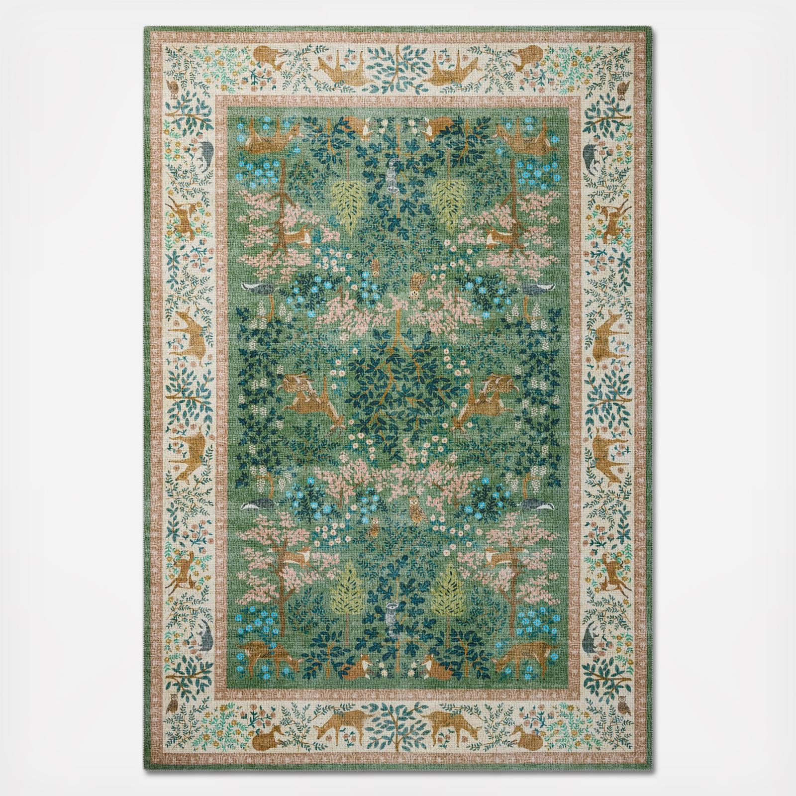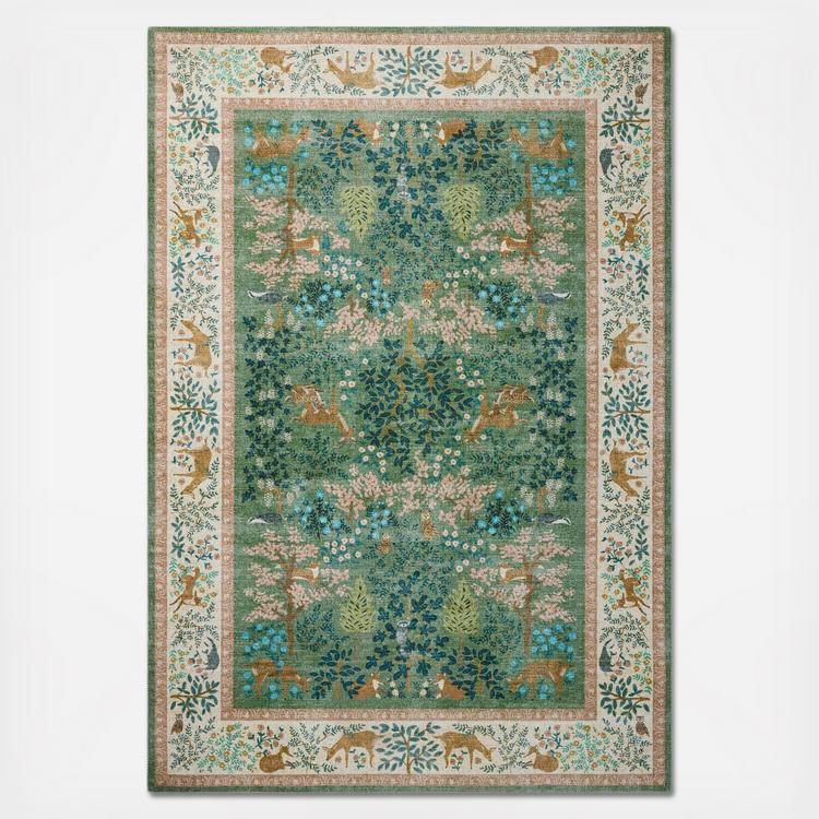The Canopy Collection is a floral runner with an enchanted forest design based on hand-painted artwork by Rifle Paper Co. in collaboration with Loloi. The whimsical design features lush scenes visited by charming woodland creatures, from prancing deer to beautifully plumed peacocks. This collection is power-loomed of a soft polyester in China, a durable construction for living room rugs, bedroom rugs, entryway rugs, and more.