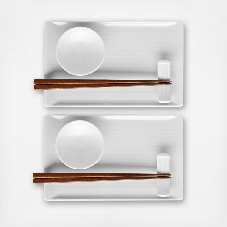 Loft white is fine porcelain dinnerware, serveware and accessory pieces made in Germany and designed by Rosenthal. White color with subtle raised white lines make this dinnerware perfect for everyday use or more formal entertaining.