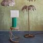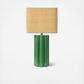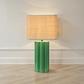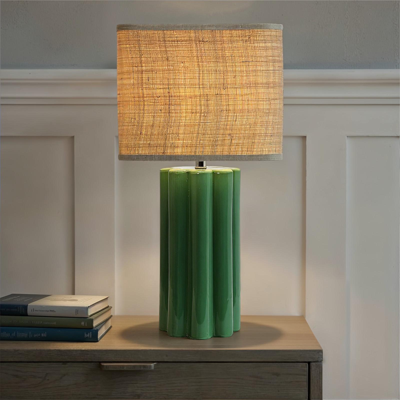 Add some style and personality to the space with this green stoneware table lamp that showcases a bright green stoneware base with a fluted sculptural shape, topped with a natural raffia shade. It features a stoneware base that has a square shape and a fluted design that creates a beautiful texture and contrast. The bright green color adds a touch of freshness and vibrancy to the lamp, while the natural raffia shade creates a cozy and inviting light that complements the green base. The shade is made of raffia, which is a natural and durable fiber. This table lamp is suitable for any room that needs some extra color and texture, such as the living room, bedroom, office, or any other area. It can also be a great gift for anyone who loves bohemian, eclectic, or contemporary design. Add this green stoneware table lamp to the home and enjoy its beauty and functionality.