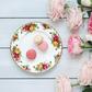 This Salad Plate is decorated with the Old Country Roses signature motif of burgundy, pink and yellow roses, accented with lustrous gold banding.