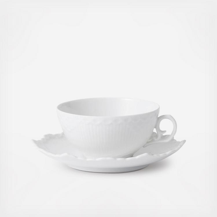White Fluted Full Lace 2-Piece Tea Cup & Saucer Set