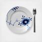 The familiar Blue Fluted Plain design, interpreted in new and surprising ways. Each piece of Blue Fluted Mega has its own unique hand-painted design.