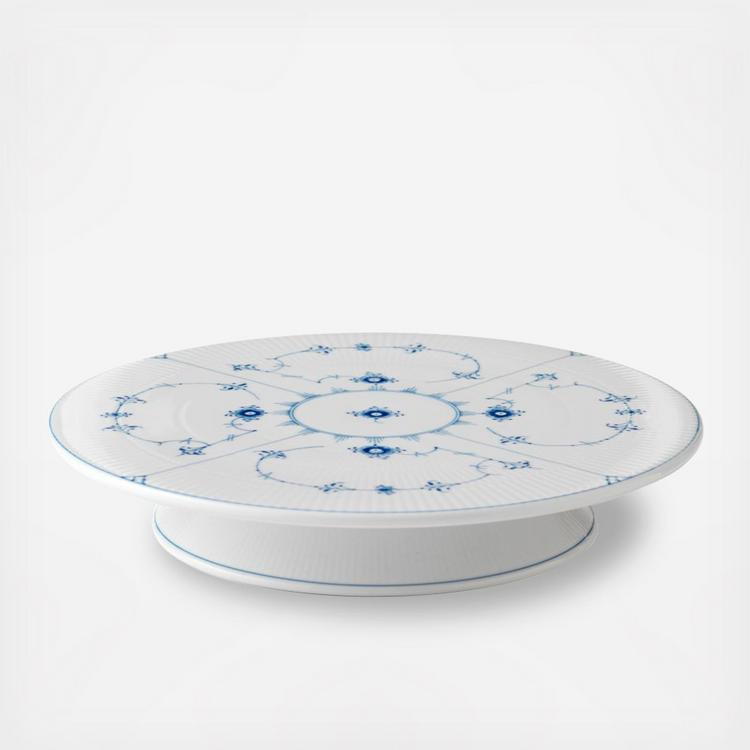 Blue Fluted Plain Footed Cake Plate