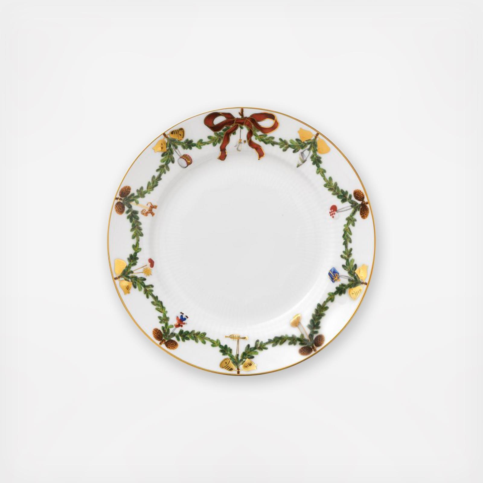 The joys of the holiday season are all here. Royal Copenhagen's Star Fluted Christmas service sees garlands of spruce wind their way around all plates, decorated with bows of satin, hearts, drums, angels the staples of a traditional, utterly cosy Danish Christmas. No two bows are ever tied the same. On the tree, the presents or on any of these unique pieces.