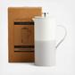Inspired by the relaxed vibe of a coffee bar, Royal Doulton's Coffee Studio collection is ideal for every coffee lover. Become a barista in your own kitchen with this French Press. Accompanied with instructions for the ideal brew, the aroma of full flavored pressed coffee will fill your home. It is important to use the right amount of coffee to the amount of water and to drink it quickly after brewing so it does not keep extracting flavors from the grounded coffee. Partially dipped in a grey glaze and packaged in a stylish kraft box, this French Press is perfect for gifting and hosting.