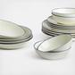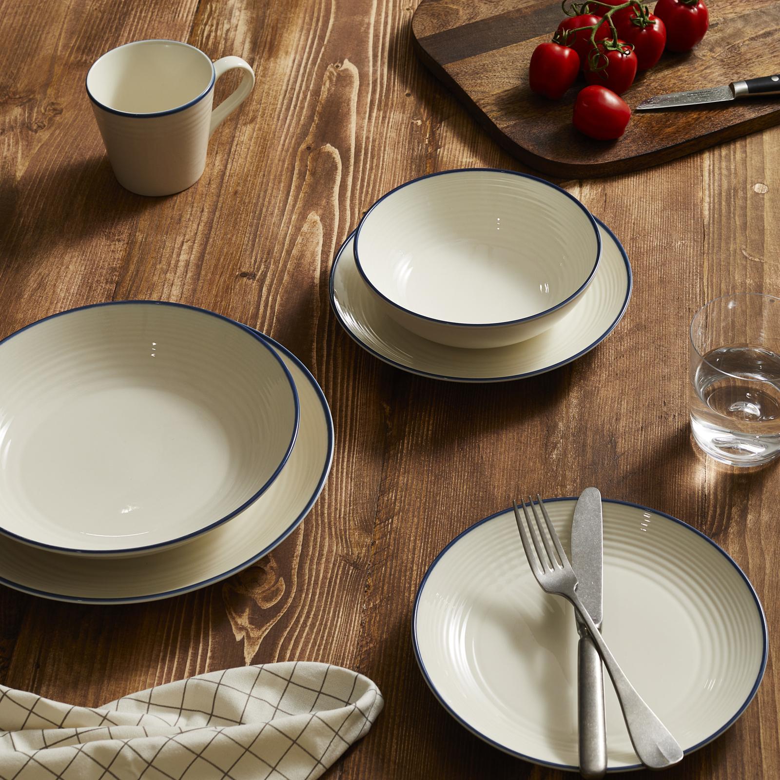From a delicious snack, to a full roast dinner, to your favorite pasta dish, refresh mealtimes with this Gordon Ramsay Maze Denim Line 16 Piece Dinner Set. Comprising four dinner plates, four side plates, four pasta bowls and four cereal bowls, each one is crafted from stoneware featuring the Maze circular design and contrasting blue denim glaze line around the rim. Designed to layer with existing pieces of Maze for a cool, casual look at mealtimes. Don’t forget the matching mugs.