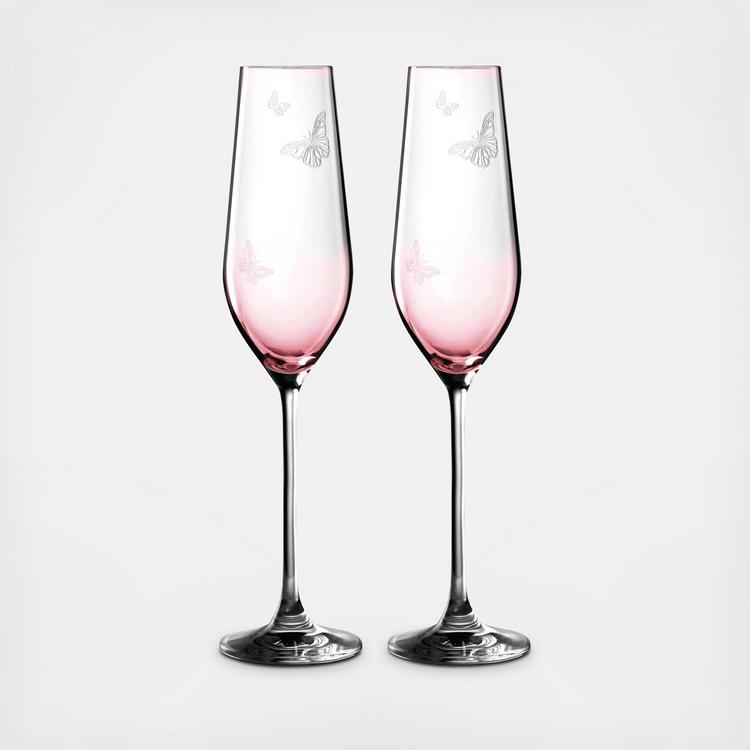 Elegant and chic, the glassware range features the model's signature butterfly detail. From the sophisticated shape to the beautiful etching, Miranda has specifically designed a stemware & giftware range to reflect her feminine, classic and relaxed sense of style, ranging in design which are clear in color, to lightly sprayed with pink to give a cooL blush finish.