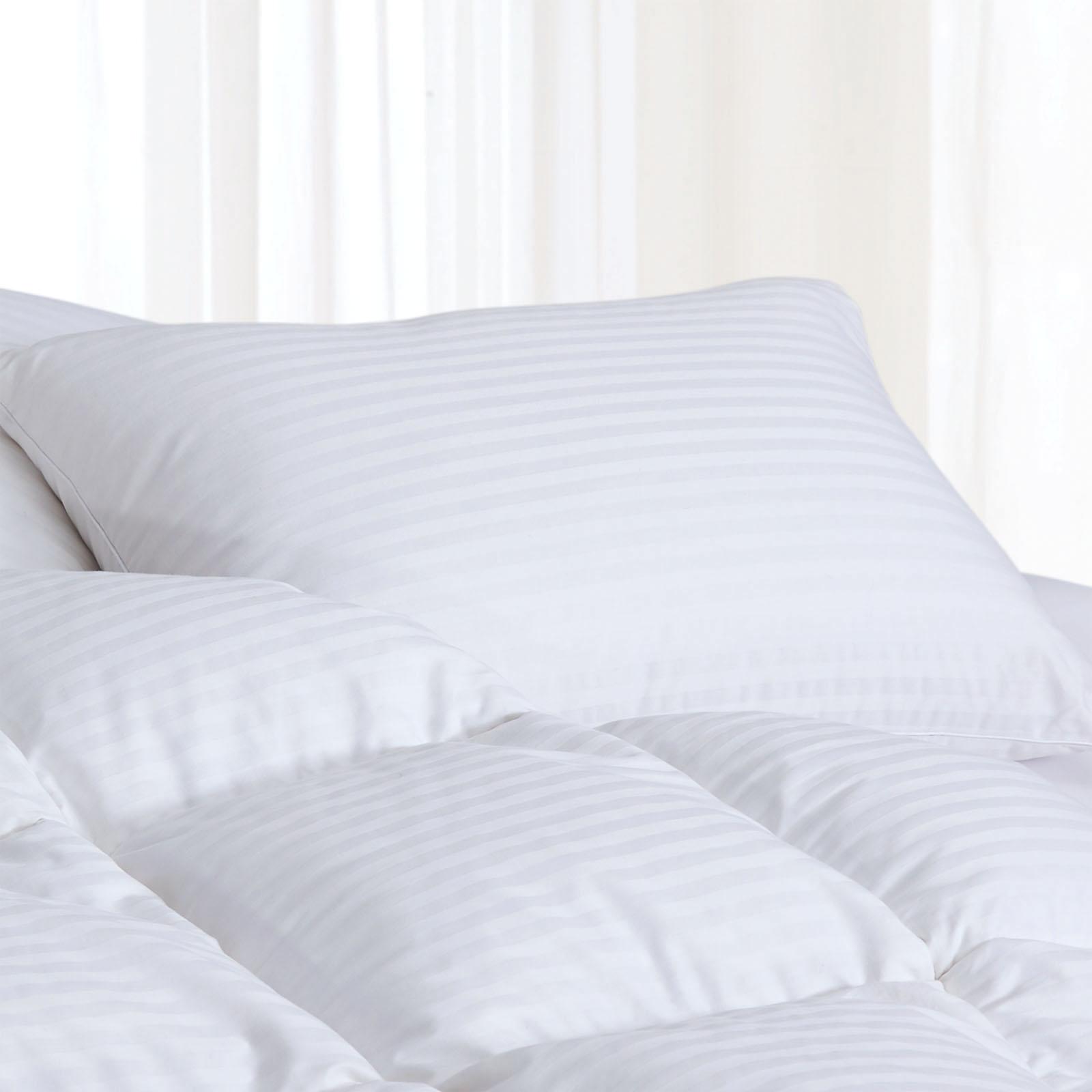 Classic stripes cozy comfort. Our Superior Down Alternative Pillow is individually handcrafted in Maine from fine imported materials, and features a classic 300 thread count, cotton damask stripe shell. Filled with lofty, hypoallergenic European down alternative fill, it’s the next best thing to natural down. Our downproof fabric is double-stitched for lasting durability.