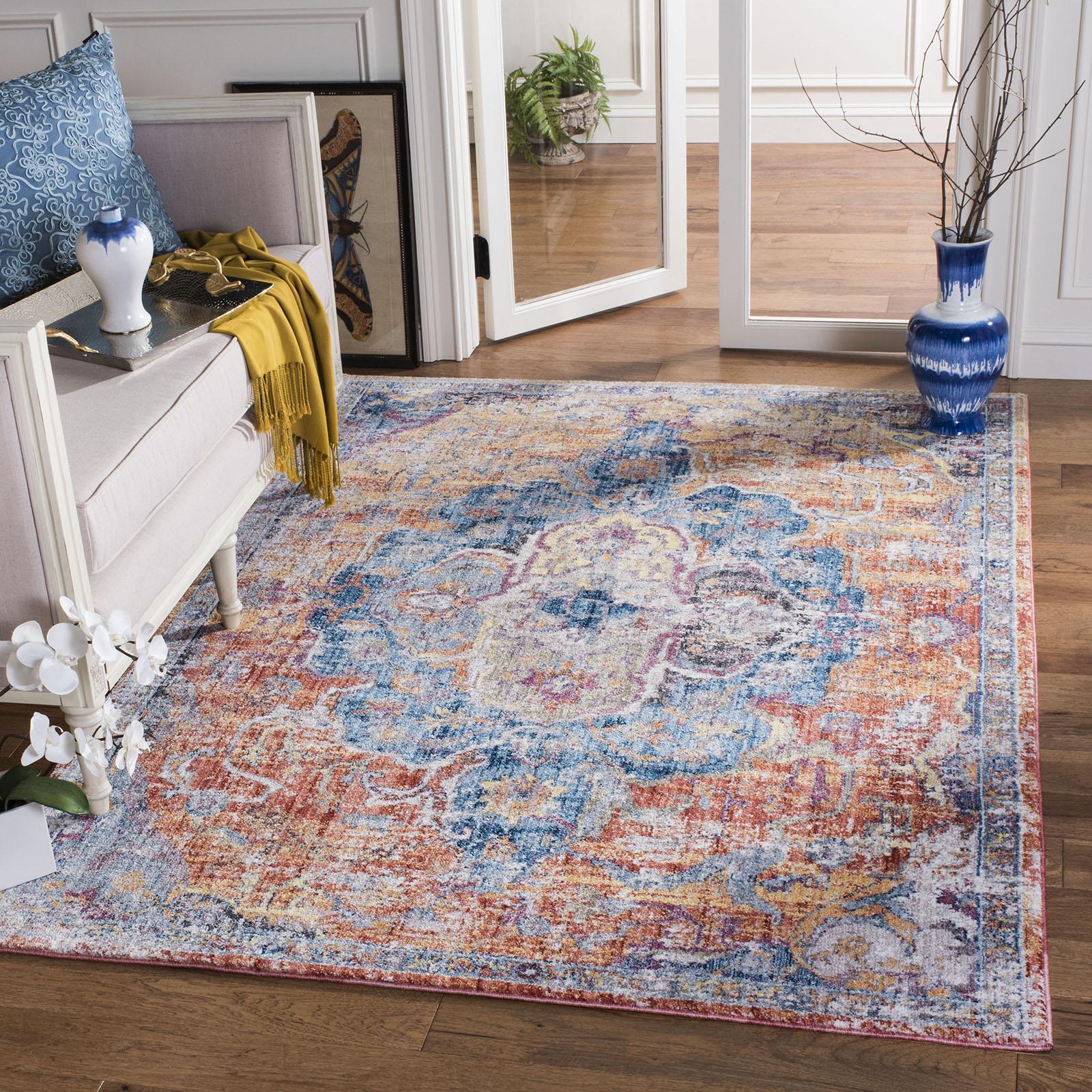Care Instructions: Vacuum regularly to prevent dust and crumbs from settling into the roots of the fibers. Avoid direct and continuous exposure to sunlight. Use rug protectors under the legs of heavy furniture to avoid flattening piles. Do not pull loose ends; clip them with scissors to remove. Turn carpet occasionally to equalize wear. Remove spills immediately. Packing and shipping may cause temporary creases in area rugs. To remove them back-roll/reverse roll your rug and allow time for the creases to relax.