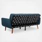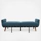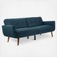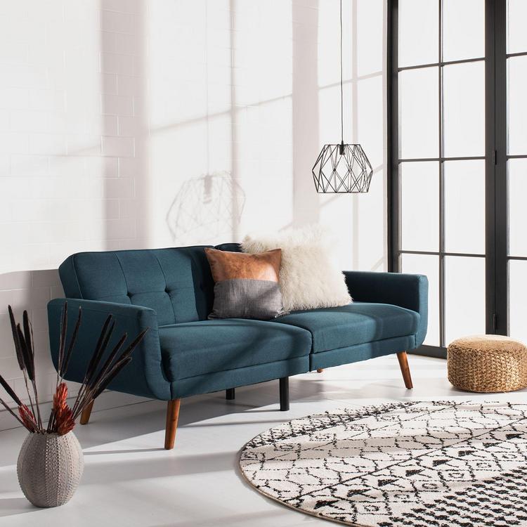 The cutting-edge retro spin on this contemporary foldable futon bed delivers two stylish pieces in one. Designed with clean lines and gentle curves, its neutral upholstery features charming tufts. Its natural wood legs make it a classic.