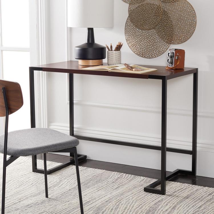 Give your home office a fresh new look with this captivating Calloway Desk. Calloway’s warm walnut finish and open black frame perfectly accents any decor’s color scheme, flaunting an added level of artistic depth with subtle Greek-key inspired legs.