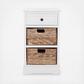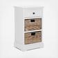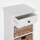 A carefree spirit infuses thanks to the side tables generous woven baskets. One drawer and two removable baskets make de-cluttering and cleanup a breeze. Handsomely crafted of pine with vintage grey finish, the Storage Side Table brings a touch of classic island style to your bedroom, living room, or master bath.
