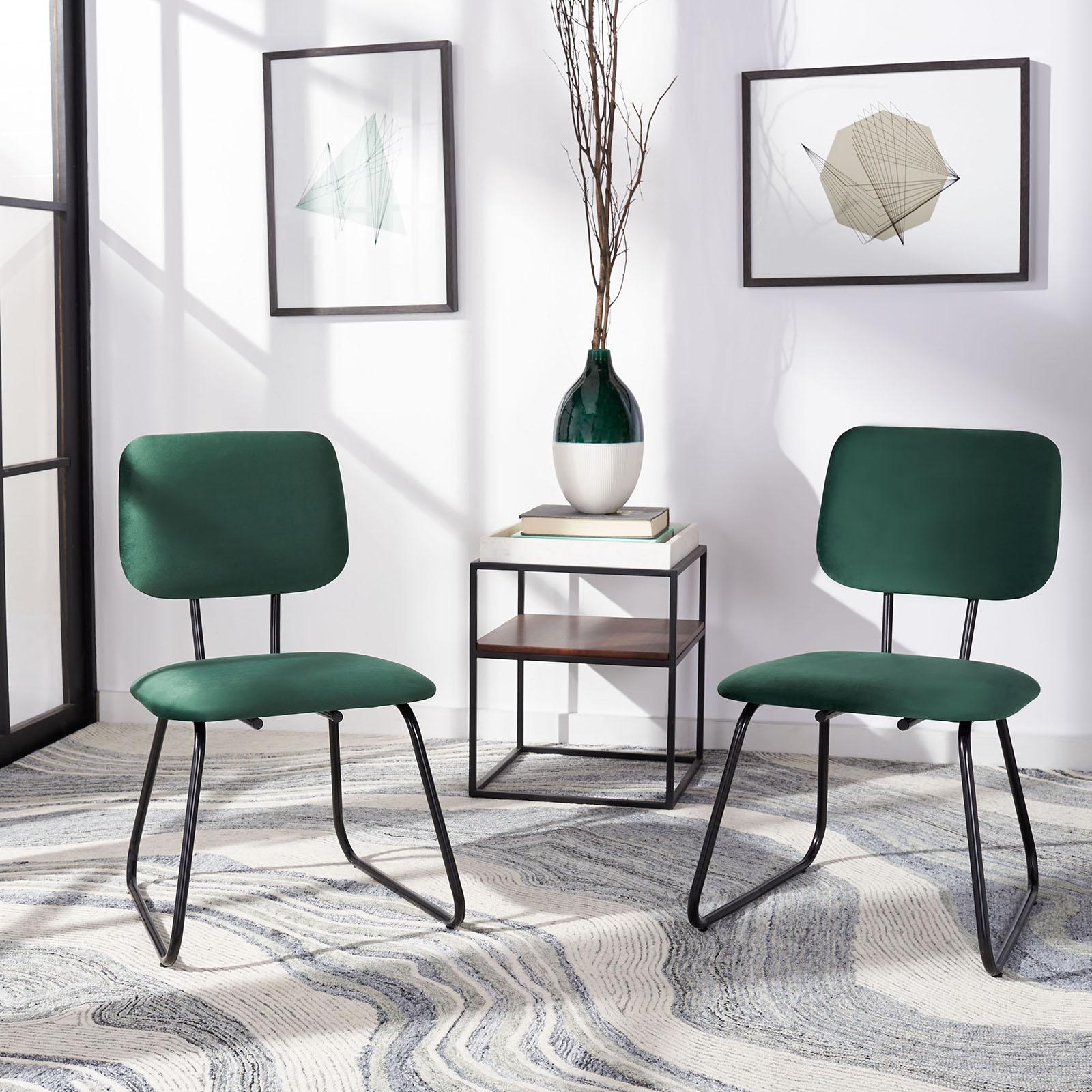 Refresh your décor with the modern elegance of this Chavelle Side Chair. Chavelle’s subtly reclined back allows for comfortable lounging, and the rounded corners of its malachite green velvet cushions perfectly offset the slightly angled hairpin-style matte black frame. Sold in sets of two.