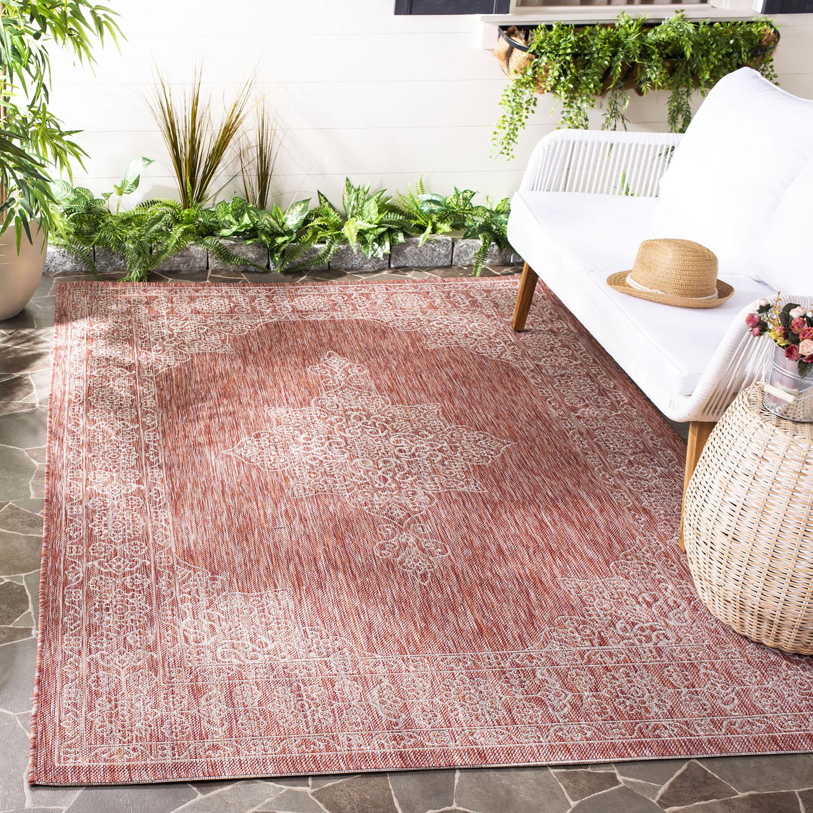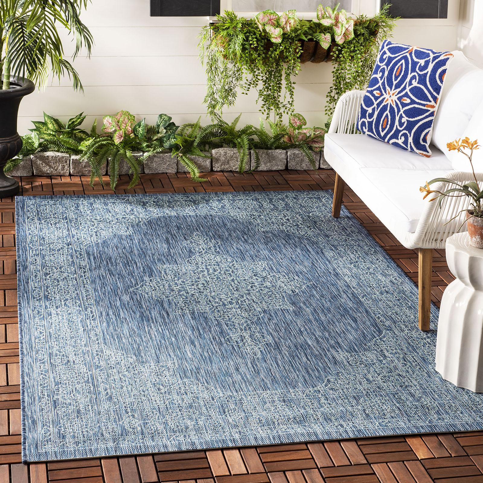 Courtyard indoor outdoor rugs bring interior design style to busy living spaces, inside and out. Courtyard is beautifully styled with patterns from classic to contemporary, all draped in fashionable colors and made in sizes and shapes to fit any area. Courtyard rugs are made with enhanced polypropylene in a special sisal weave that achieves intricate designs that are easy to maintain - simply clean with a garden hose.