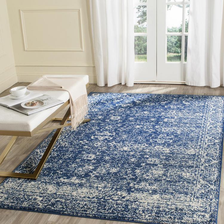 A spectacular fusion of fashion-forward pattern, color and texture, Evoke frieze rugs by Safavieh are soft and casual. Power-loomed of high-twist polypropylene yarns, these artful transitional rugs are designed for high style, performance and easy care. Sink your toes into lush cut-pile frieze Evoke rugs in a collection that ranges from painterly watercolor motifs to classic florals that complement a broad range of decorating styles.