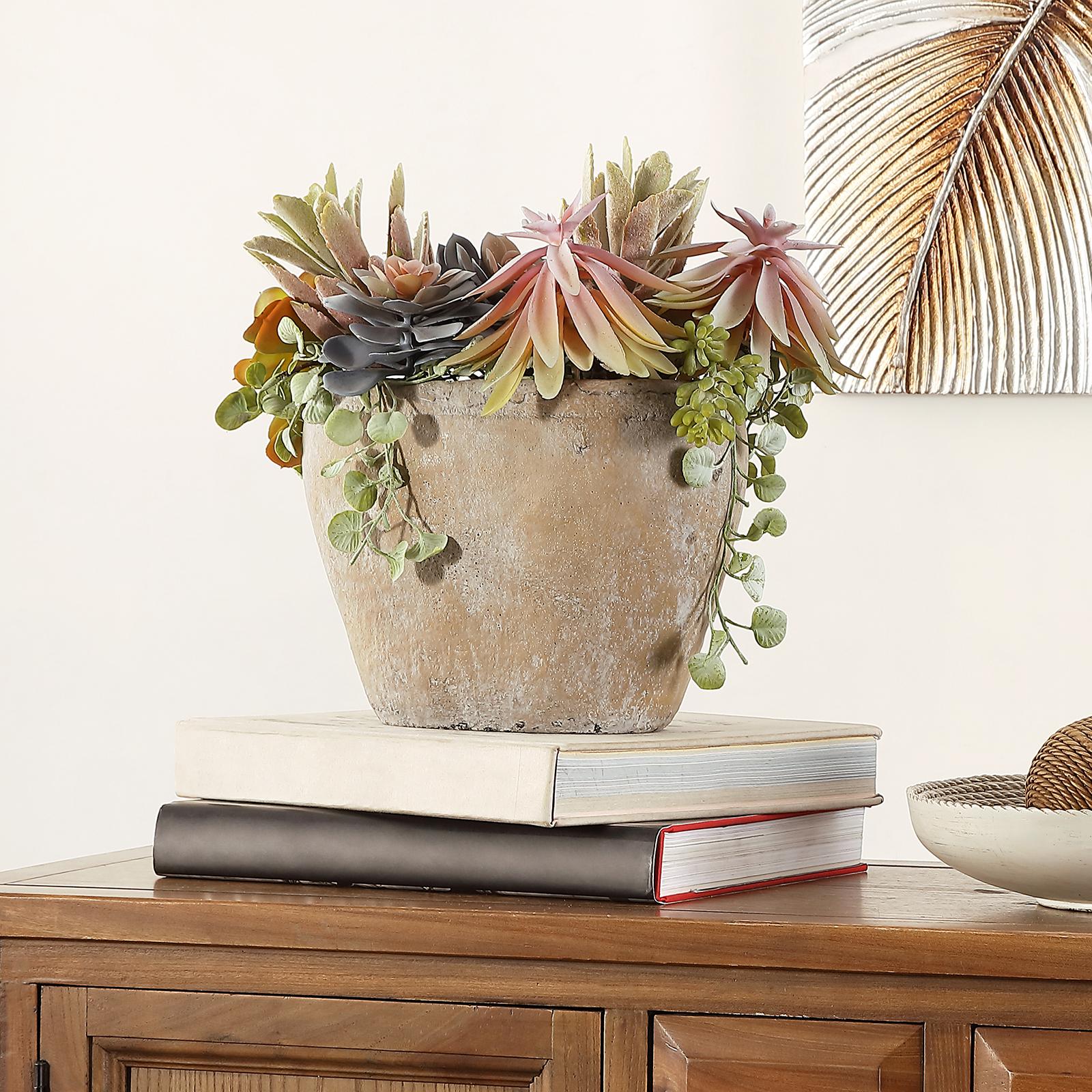 Succulents are always in, and this faux succulent potted plant perfectly enriches any interior with zero-stress chic. It’s beautifully styled to remain full of lush leaves and engaging colors regardless of the season.