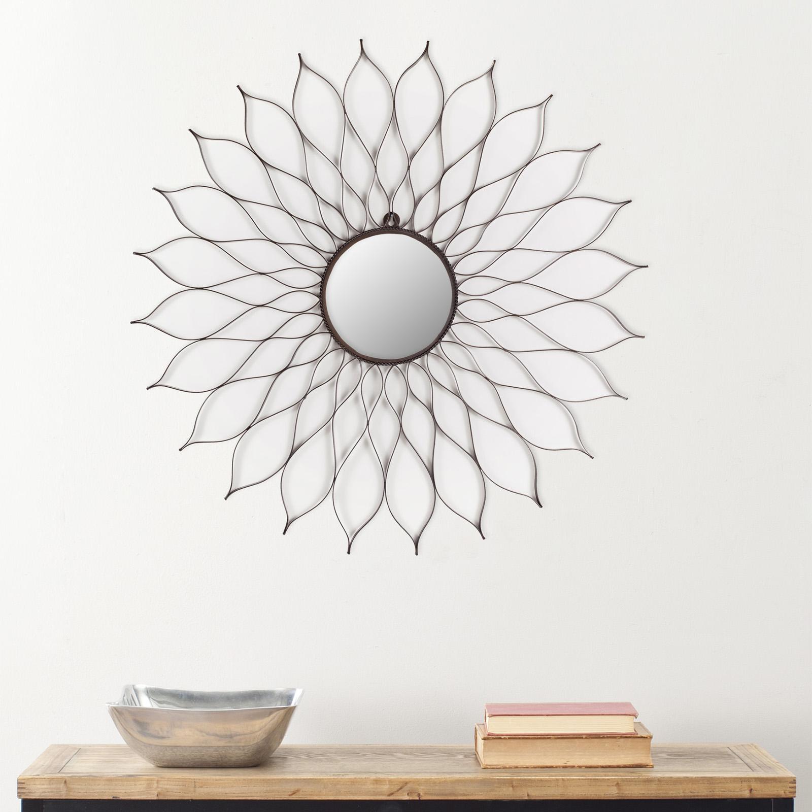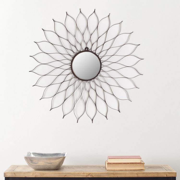 Perfect for a hallway or gallery wall, this flower mirror is a delicate yet artistic piece. Lightly wrought-iron petals gently spread out around the mirrored disc on this enchanting mirror; delicate styling gives this wallflower an airy allure.