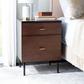 Elegant and modern, the natural beauty of this 2-drawer nightstand will add style and warmth to any bedroom. Finely crafted with wood, its rich finish and metal legs give it vintage-style charm. Its two ample drawers make it an investment.