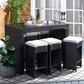 Pairing clean architectural lines with a rippling surface, this outdoor dining set is both beautiful and hardworking. This flaunts its parsons style table and six stools in forever-chic colors with luxuriously plush cushions in designer-smart tones to complement any patio or porch’s decor.