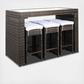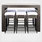 Pairing clean architectural lines with a rippling surface, this outdoor dining set is both beautiful and hardworking. This flaunts its parsons style table and six stools in forever-chic colors with luxuriously plush cushions in designer-smart tones to complement any patio or porch’s decor.