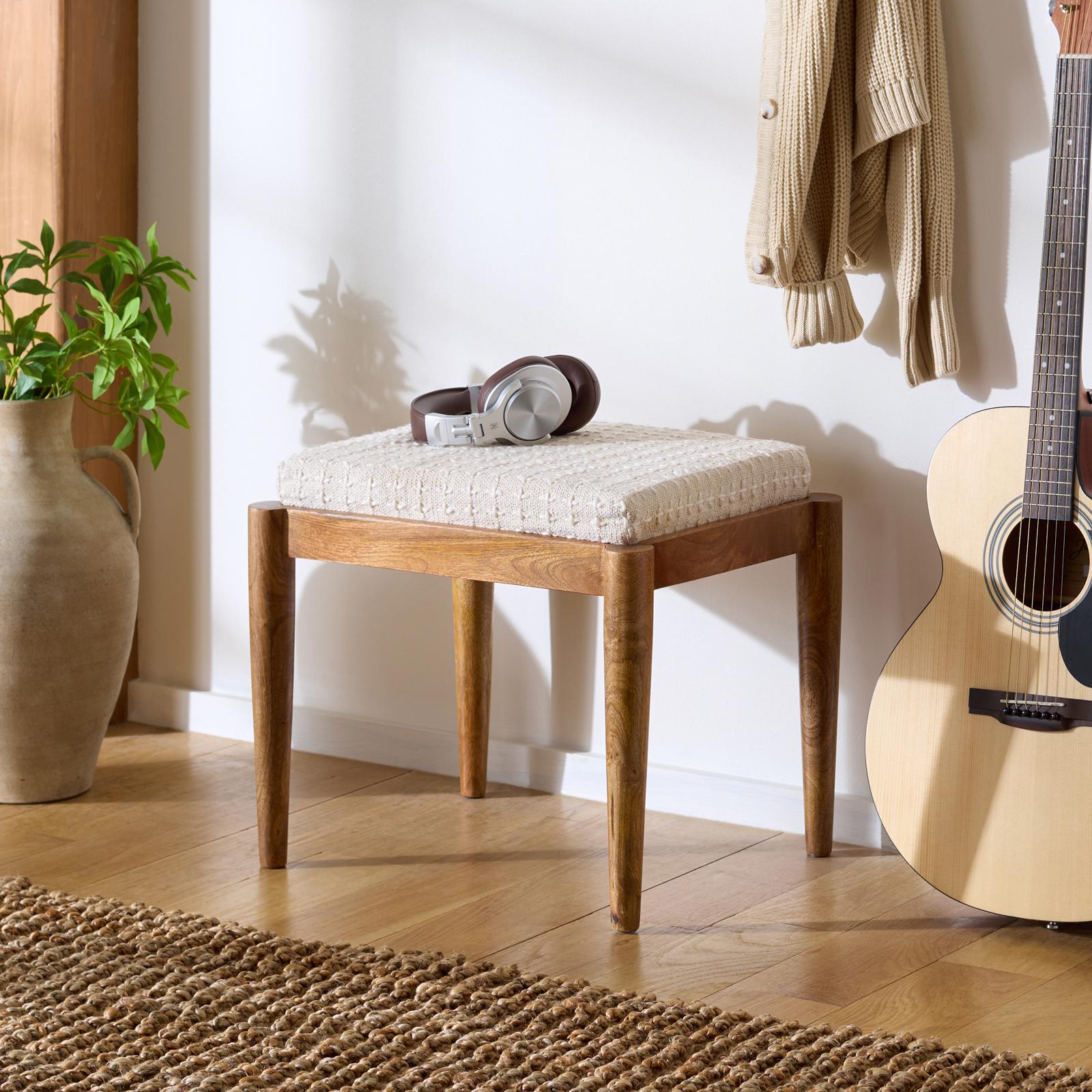 Introducing the Jutta Ottoman in a soothing cream and natural palette, a perfect blend of elegance and comfort for your living space. Crafted from sturdy wood and tastefully upholstered, this piece seamlessly integrates into your decor, offering both style and functionality. The Jutta Ottoman serves as a versatile addition to any room, acting as a comfortable footrest or an extra surface for accessories. The neutral tones of cream and natural bring a sense of calmness and sophistication, making it easy to pair with various interior themes. Its solid wooden structure ensures a stable foundation while the upholstered surface provides a soft and inviting texture. Whether you are entertaining guests or enjoying a quiet evening, the Jutta Ottoman is designed to enhance your home experience. Transform your home with this stylish piece, where every detail is carefully considered to offer a harmonious balance between design and practicality. Discover the charm of the Jutta Ottoman today.