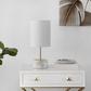 An icon of glamorous living, this Kamilah Table Lamp is a must have in any high fashion interior. Kamilah’s oversized shade and white marble finished base is absolutely breathtaking, and its asymmetrical negative space gives your decor a modern art feel.