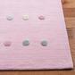 Introducing our charming children's area rug, a dreamy addition to any nursery or playroom. This captivating features a soft light pink backdrop with a delightful sporadic polka dot pattern in serene pastel hues. Perfect for little feet, the rug boasts a cozy height, creating a warm and inviting surface for playtime and relaxation Expertly hand-loomed with precision and care in India, this area rug exemplifies quality craftsmanship. Its durable construction is composed of a well-balanced blend of wool for natural resilience and warmth, latex for elasticity and strength, and cotton for a touch of softness. Each material contributes to the rug's overall comfort and longevity, ensuring that it's not only beautiful to look at but also stands the test of time Exuding a playful yet sophisticated Kids style, this rug represents both impeccable design and practicality. The combination of its alluring pattern, soft to the touch texture, and cheerful color palette creates a joyful ambiance that will spark imagination and happiness within any child-centri space. Invite this delightful touch of whimsy into your home and watch as it becomes the foundation of countless joyful moments and cherished memories.