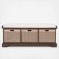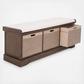 This Landers Cushion Storage Bench performs double duty as a stylish storage solution and perfect seating in an entryway or mud room. Landers gives your décor a touch of contemporary farmhouse charm with its beautiful finish and three spacious basket drawers.